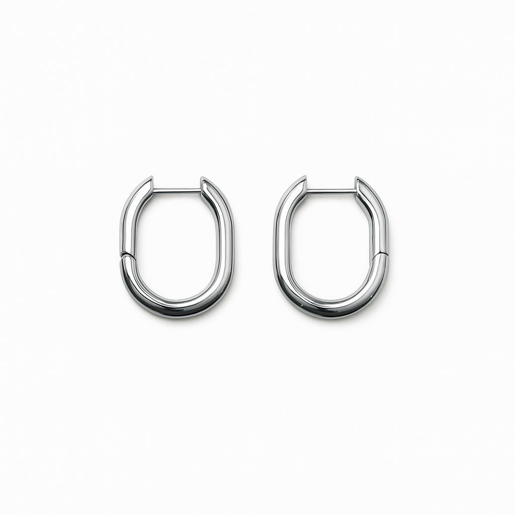 Épurées et modernes, ces créoles ovales argentées offrent une alternative chic aux créoles classiques. Avec leurs 17 x 22 mm, elles sont parfaites pour un look raffiné au quotidien comme pour une touche sophistiquée en soirée.