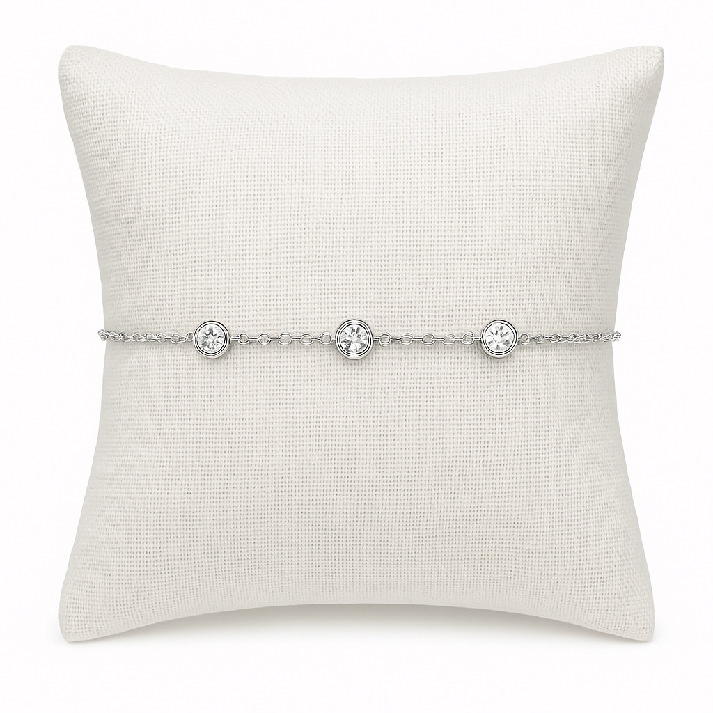 Raffiné et lumineux, ce bracelet doré met en valeur trois pierres rondes serties, qui captent la lumière avec élégance. Sa longueur de 18 cm avec extension de 3 cm permet un ajustement parfait pour tous les poignets.