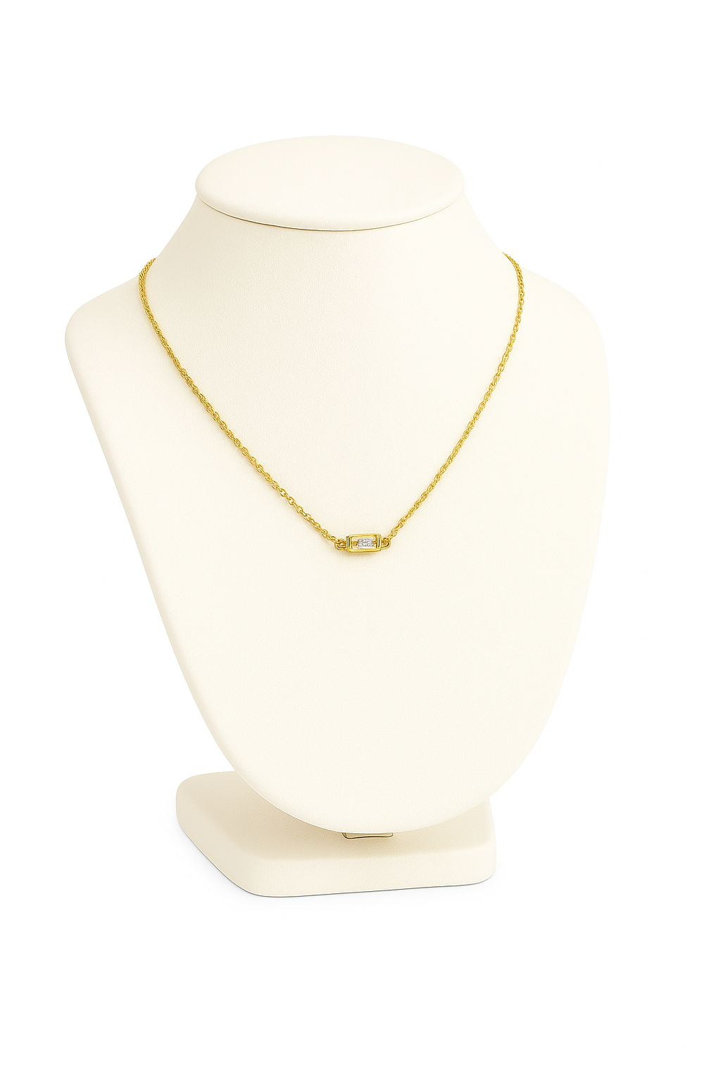 Collier rectangle doré serti d’un oxyde zirconium un bijou minimaliste et élégant à porter au quotidien.
